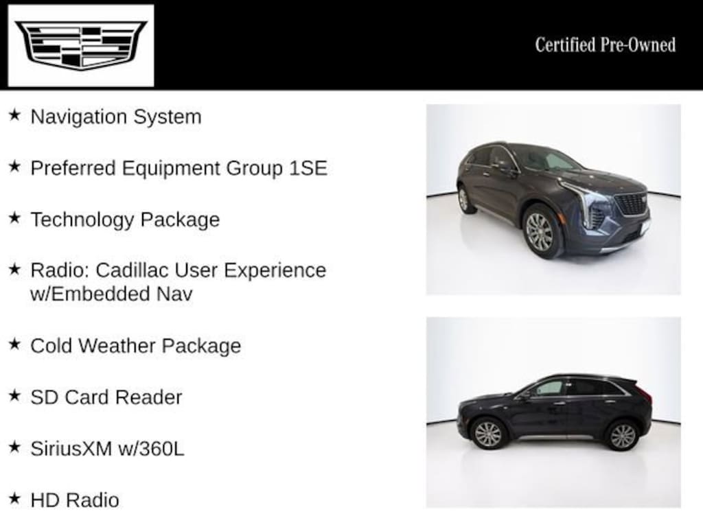 Certified. CARFAX One-Owner. Galactic Gray 2023 Cadillac XT4 Premium Luxury AWD 9-Speed Automatic 2.0L I4 Turbocharged XT4 Premium Luxury, 4D Sport Utility, 2.0L I4 Turbocharged, 9-Speed Automatic, AWD, Galactic Gray, Black Leather, 2-Way Driver Seat Power Lumbar Control, 2-Way Passenger Seat Power Lumbar Control, 4.2 Diagonal Color Display Driver Info Center, 6-Way Power Passenger Seat Adjuster, 7-Speaker Audio System w/Auxiliary Amplifier, 8-Way Power Driver Seat Adjuster, 8 Diagonal Color Display Driver Info Center, Air Ionizer, Apple CarPlay/Android Auto, Auto-Dimming Inside Rear-View Mirror, Automatic Emergency Braking, Bose Centerpoint Surround Sound 13-Speaker System, Cold Weather Package, Dual Panel Glass Sunroof w/Power Tilt/Sliding, Electronic Cruise Control w/Set & Resume Speed, Front & Rear Park Assist, Front Cornering Lamps, Front dual zone A/C, HD Radio, HD Rear Vision Camera, Heated Driver & Front Passenger Seats, Heated Rear Outboard Seating Positions, Heated Steering Wheel, LED Front Lamp Turn Signal, Manual Rake & Telescoping Steering Column, Navigation System, Power Liftgate, Power passenger seat, Power Rake & Telescoping Steering Column, Preferred Equipment Group 1SE, Radio: Cadillac User Experience w/Embedded Nav, Reconfigurable Full-Color Head-Up Display, Roof rack: rails only, SD Card Reader, SiriusXM w/360L, Speed control, Spoiler, Technology Package, Wheels: 18 10-Spoke Pearl Nickel Finish Alloy, Wireless Apple CarPlay/Wireless Android Auto, Wireless Phone Charging.