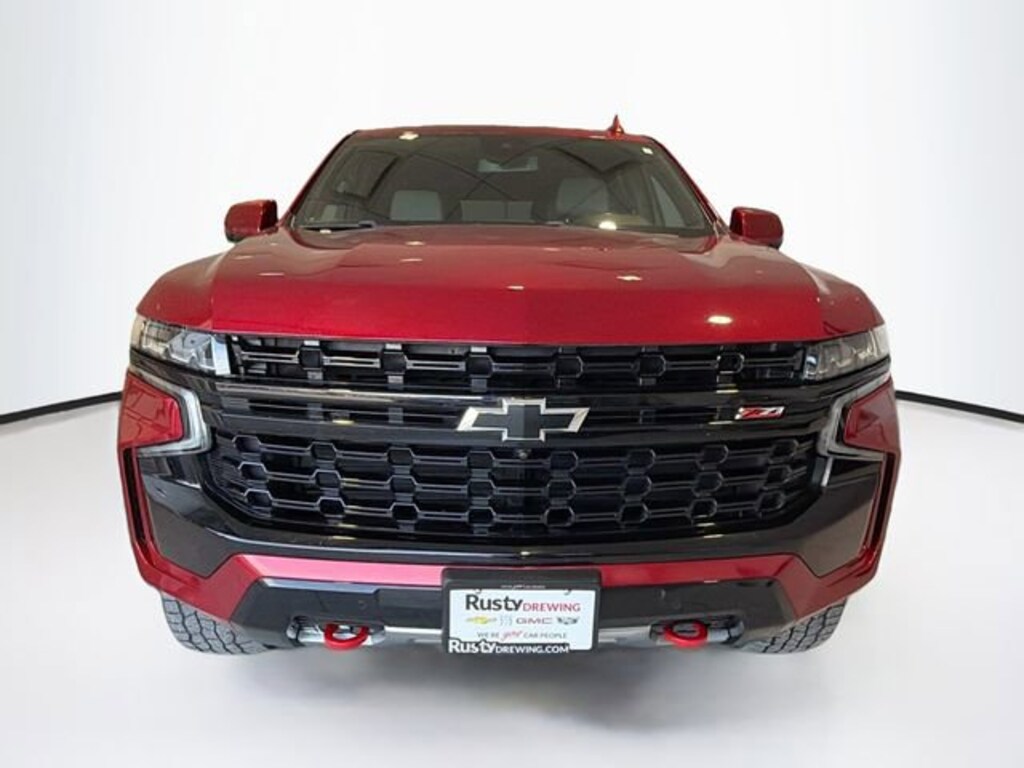 Certified. CARFAX One-Owner. Radiant Red Tintcoat 2023 Chevrolet Tahoe Z71 4WD 10-Speed Automatic with Overdrive EcoTec3 5.3L V8 Tahoe Z71, 4D Sport Utility, EcoTec3 5.3L V8, 10-Speed Automatic with Overdrive, 4WD, Radiant Red Tintcoat, Gideon/Very Dark Atmosphere Leather, 10-Way Power Driver & Passenger Seat Adjusters, 1st & 2nd Row Color-Keyed Carpeted Floor Mats, 2-Speed Active Electronic AutoTrac Transfer Case, 2nd Row Pwr Release 60/40 Split-Folding Bench Seat, 3rd Row 60/40 Power-Folding Split-Bench Seat, Apple CarPlay/Android Auto, Auto-Dimming Inside Rear-View Mirror, Black Tubular Assist Steps, Bose 9-Speaker Stereo Audio System Feature, Bright Front & Rear Door Sill Plates, Color-Keyed Carpeting Floor Covering, Driver & Front Outboard Passenger Airbags, Driver Alert Package, Dual-Pane Power Panoramic Sunroof, Enhanced Driver Information Center, Floor Console w/Storage Area, Front High-Approach Angle Fascia, Front High-Back Reclining Bucket Seats, Hands-Free Rear Power Programmable Liftgate, HD Surround Vision, Heated 2nd Row Outboard Seats, Heated Driver & Front Passenger Seats, Heated front seats, Heated Steering Wheel, Hill Descent Control, Infotainment Display, Lane Change Alert w/Side Blind Zone Alert, LED Daytime Running Lamps, License Plate Front Mounting Package, Luxury Package, Memory Settings, Memory Settings for Driver, Navigation System, Outside Heated Power-Adjustable Mirrors, Power Liftgate, Power Release 2nd Row Bucket Seats, Power Tilt & Telescopic Steering Column, Preferred Equipment Group 2Z7, Rear Cross Traffic Alert, Rear Pedestrian Alert, Red Horizontal-Mounted Recovery Hooks, Remote Start, SiriusXM Radio w/360L, Universal Home Remote, Wireless Charging, Wrapped Steering Wheel.Recent Arrival!Chevrolet Certified Pre-Owned Details:* Warranty Deductible: $0* Roadside Assistance* Limited Warranty: 12 Month/12,000 Mile (whichever comes first) from certified purchase date* 172 Point Inspection* 24 months/24,000 miles (whichever comes first) Certified Pre-Owned Scheduled Maintenance Plan and 3 days/150 miles (whichever comes first) Vehicle Exchange Program. SiriusXM 3-month trial subscription.* Powertrain Limited Warranty: 72 Month/100,000 Mile (whichever comes first) from original in-service date* Transferable Warranty* Vehicle HistoryWelcome to Rusty Drewing Automotive. As your mid-Missouri locally and family owned dealer, excellent customer service is always our #1 priority. Whether you're from Jefferson City or Columbia, MO, from start to finish, we'll make sure your visit to Rusty Drewing Automotive is the best car-buying experience.