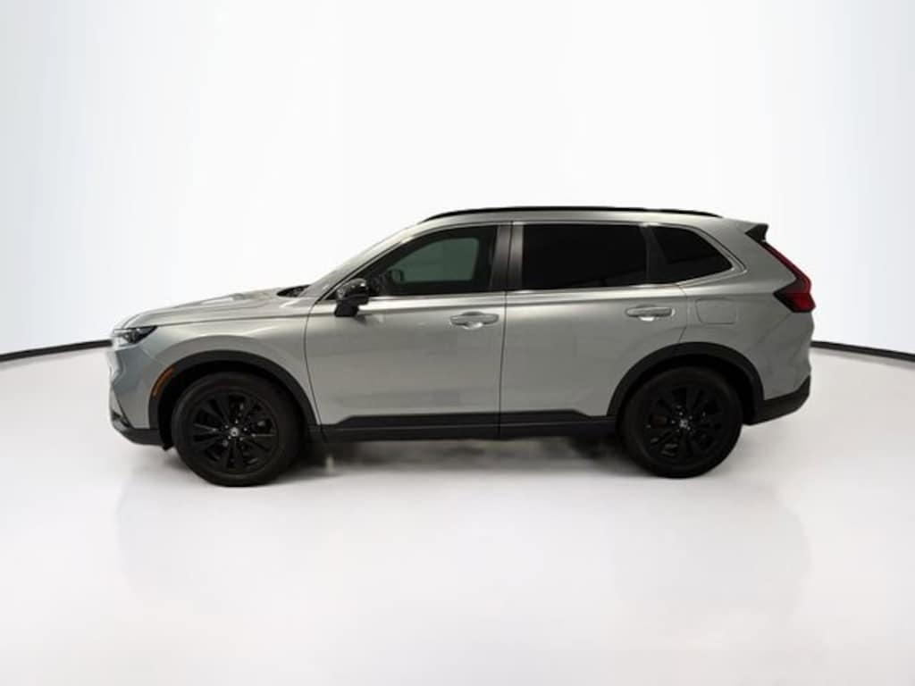 CARFAX One-Owner. Solar Silver Metallic 2025 Honda CR-V Hybrid Sport Touring AWD eCVT 2.0L I4 DOHC 16V CR-V Hybrid Sport Touring, 4D Sport Utility, 2.0L I4 DOHC 16V, eCVT, AWD, Solar Silver Metallic, Black w/Leather Seat Trim, Auto-dimming Rear-View mirror, Exterior Parking Camera Rear, Front Bucket Seats, Front dual zone A/C, Heated Front Bucket Seats, Heated front seats, Heated steering wheel, Navigation system: Honda Satellite-Linked Navigation System, Power Liftgate, Power moonroof, Radio: Bose Premium Sound System w/Navigation, Wheels: 19" Berlina Black Alloy.