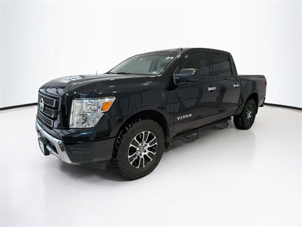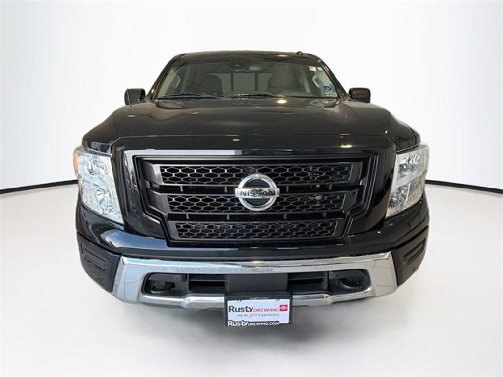 Super Black 2021 Nissan Titan SV 4WD 9-Speed Automatic 5.6L V8 DOHC 32V 400hp Titan SV, 4D Crew Cab, 5.6L V8 DOHC 32V 400hp, 9-Speed Automatic, 4WD, Super Black, Black Cloth, 110V/12V Outlets In Back Of Center Console, 2 Illuminated USB-A Ports In Back Of Center Console, Accessory Utility Package, All Season Floor Mats, Auto-Dimming Rear-View Mirror, Bumper Step, Chrome Interior Door Locks, Convex Spotter Mirror, Dedicated Cell Phone Holder, Dual Zone Automatic HVAC, Front & Rear Parking Sensors, Heated Front Captain's Chairs, Intelligent Key System, Leather-Wrapped Steering Wheel, Navigation System, Off Road Protection Package, Power Sliding Rear Window w/Defogger, Radio: NissanConnect w/Navigation, Rear HVAC Vents, Rear Parking Sensors, Rear step bumper, Remote Engine Start on Key Fob, Speed control, Splash Guards, SV Convenience Package, Traffic Sign Recognition (TSR), Trailer Hitch.