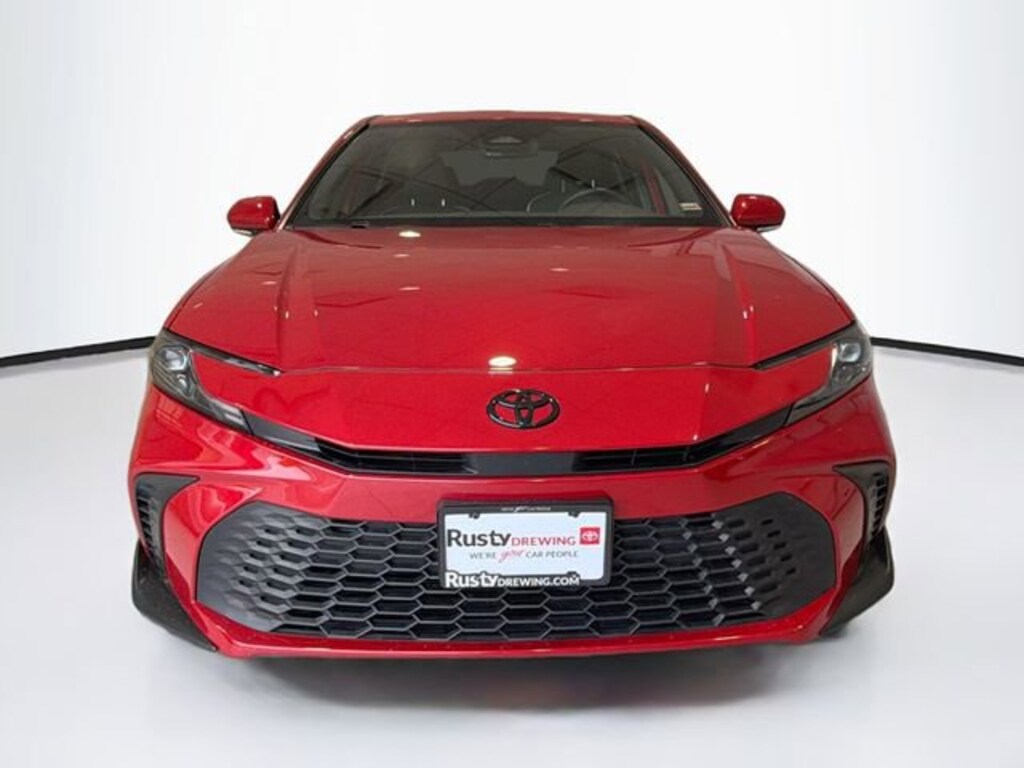 Supersonic Red 2025 Toyota Camry SE FWD eCVT 2.5L 4-Cylinder 16V DOHC Camry SE, 4D Sedan, 2.5L 4-Cylinder 16V DOHC, eCVT, FWD, Supersonic Red, Black Cloth, Apple CarPlay/Android Auto, Auto-Dimming Rearview Mirror w/HomeLink, Cold Weather Package, Convenience Package, Exterior Parking Camera Rear, Front dual zone A/C, Heated Front Seats, Leather steering wheel, Leather Wrapped Heated Steering Wheel, Multimedia Upgrade Package, Power Tilt/Slide Moonroof, Radio: Toyota Audio Multimedia w/12.3" Touchscreen, Smart Key System, Wheels: 18" Black-Finished Alloy.