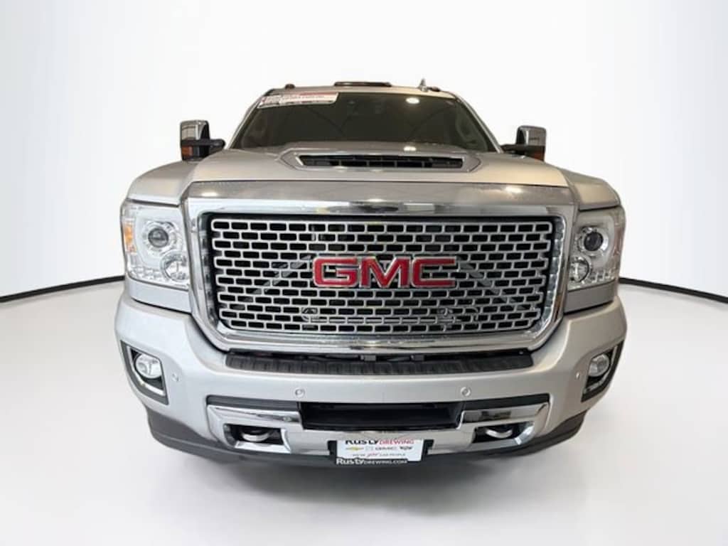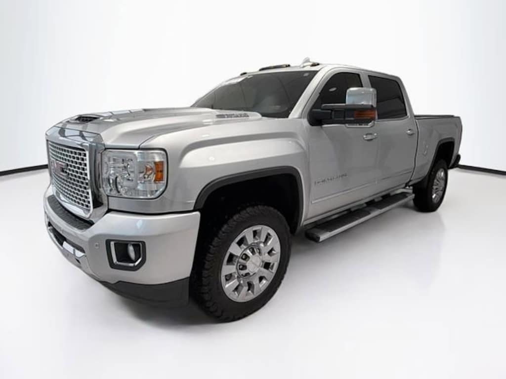 Certified. Quicksilver Metallic 2017 GMC Sierra 2500HD Denali 4WD Allison 1000 6-Speed Automatic Duramax 6.6L V8 Turbodiesel Sierra 2500HD Denali, 4D Crew Cab, Duramax 6.6L V8 Turbodiesel, Allison 1000 6-Speed Automatic, 4WD, Quicksilver Metallic, Jet Black Leather, Apple CarPlay/Android Auto, Bluetooth® For Phone, Chrome Power-Adjustable Heated Outside Mirrors, Chrome Recovery Hooks, Driver Alert Package, Dual-Zone Automatic Climate Control, Duramax Plus Package, Electronic Shift Transfer Case, Engine Block Heater, Exhaust Brake, Exterior Parking Camera Rear, EZ-Lift & Lower Tailgate, Forward Collision Alert, Heated & Ventilated Front Bucket Seats, Heated Driver and Front Passenger Seats, Heated Leather Wrapped Steering Wheel, Heated steering wheel, Heavy-Duty Handling/Trailering Suspension Package, Hill Descent Control, Lane Departure Warning System, Manual Tilt-Wheel/Telescoping Steering Column, Navigation System, Off-Road Package, Perforated Leather Appointed Seat Trim, Power Sunroof, Premium audio system: IntelliLink, Radio: AM/FM/SiriusXM/HD w/Navigation, Steering Wheel Audio Controls, Trailer Brake Controller, Trailering Equipment, Ultrasonic Front & Rear Park Assist, Z71 Chrome Front Fender Emblems.