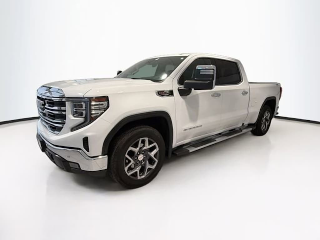 Certified. CARFAX One-Owner. Summit White 2023 GMC Sierra 1500 SLT 4WD 10-Speed Automatic EcoTec3 6.2L V8 Sierra 1500 SLT, 4D Crew Cab, EcoTec3 6.2L V8, 10-Speed Automatic, 4WD, Summit White, Jet Black Leather, 120-Volt Bed Mounted Power Outlet, 120-Volt Instrument Panel Power Outlet, 170 Amp Alternator, 2 Charge/Data USB Ports, 2 Charge/Data USB Ports Inside Center Console, 2 Type-C Charge-Only Rear USB Ports, 20 Polished Aluminum Wheels, 6-Speaker Audio System Feature, Adaptive Cruise Control, Apple CarPlay/Android Auto, Auto-Locking Rear Differential, Auxiliary External Transmission Oil Cooler, Chrome Header & Chrome Grille Insert Bars, Chrome Wheel To Wheel Assist Steps, Color-Keyed Carpeting Floor Covering, Compass, Deep-Tinted Glass, Dual Exhaust System, Electric Rear-Window Defogger, Electrical Steering Column Lock, Electronic Precision Shift, Floor-Mounted Center Console, Front Bucket Seats, Front Frame-Mounted Black Recovery Hooks, Front Rainsensing Wipers, GMC Connected Access Capable, HD Rear Vision Camera, HD Surround Vision, Heated 2nd Row Outboard Seats, Heated front seats, Heated steering wheel, Heavy-Duty Air Filter, High Capacity Suspension Package, Hill Descent Control, Hitch Guidance, Hitch Guidance w/Hitch View, In-Vehicle Trailering App, Integrated Trailer Brake Controller, Keyless Open & Start, LED Cargo Area Lighting, Manual Tilt-Wheel & Telescoping Steering Column, Navigation System, Off-Road Suspension, OnStar & GMC Connected Services Capable, Perimeter Lighting, Power Door Locks, Power Front Passenger Windows w/Express Up/Down, Power Front Windows w/Driver Express Up/Down, Power Rake & Telescoping Steering Column, Power Rear Windows w/Express Down, Power Sliding Rear Window w/Rear Defogger, Power Sunroof, Preferred Equipment Group 4SA, Premium Bose 7-Speaker Sound System, ProGrade Trailering System, Push Button Start, Rear Cross Traffic Braking, Rear Pedestrian Detection, Rear Wheelhouse Liners, Remote Vehicle Starter System, Safety Alert Seat, Sierra Safety Plus Package, SiriusXM w/360L, SLT Convenience Package, SLT Preferred Package, SLT Premium Package, Standard Suspension Package, Steering Wheel Audio Controls, Theft Deterrent System (Unauthorized Entry), Trailer Camera Provisions, Trailer Side Blind Zone Alert, Trailering Package, Ultrasonic Front & Rear Park Assist, Universal Home Remote, Ventilated Driver & Front Passenger Seats, Wi-Fi Hotspot Capable, Wireless Charging, Wireless Phone Projection, X31 Hard Badge, X31 Off-Road Package.